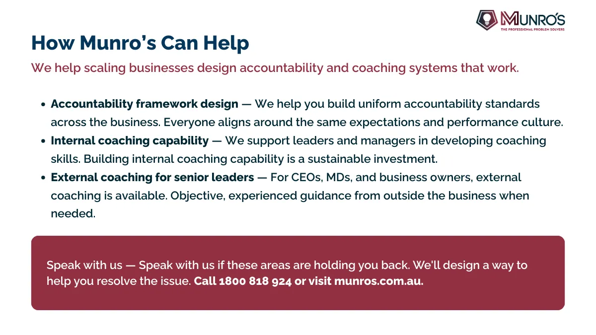 Running a growing business comes with its share of challenges – from cash flow pressures and rapid change to the constant need to review strategy. Many business owners find themselves overwhelmed by the day-to-day demands, unsure how to balance operational management with long-term growth. At Munro’s, we understand that even successful businesses need regular, honest advice and a reliable system of accountability to remain on track.